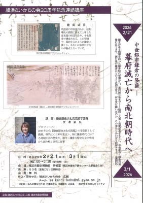 横浜さいかちの会20周年記念連続講座「中世都市鎌倉の隆盛-幕府滅亡から南北朝時代へ」